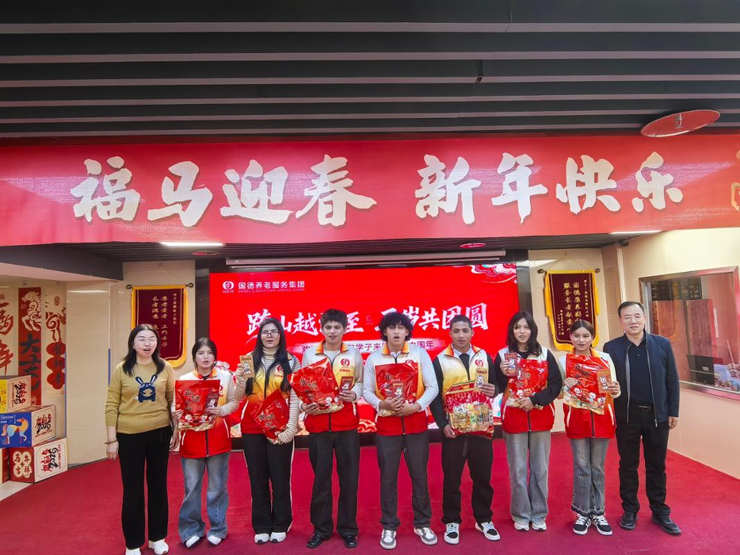 2月14日,国德康养中心餐厅内张灯结彩,处处洋溢着节日的喜庆氛围。校长徐伟与国德养老服务集团总经理程珍携教师和职工代表,与留学生们齐聚一堂,共享团圆。席间,徐伟校长致辞:“你们以实际行动诠释了‘医者仁心’的初心,愿这段弥足珍贵的经历,化作你们人生画卷中一抹温暖而明亮的底色,伴随你们走过未来的人生漫途。在此,也提前向大家送上新春的美好祝福,祝大家马年有福、马年吉祥、马到成功!”最后,向留学生们赠送了学校和国德老年康养中心精心准备的新年礼物。