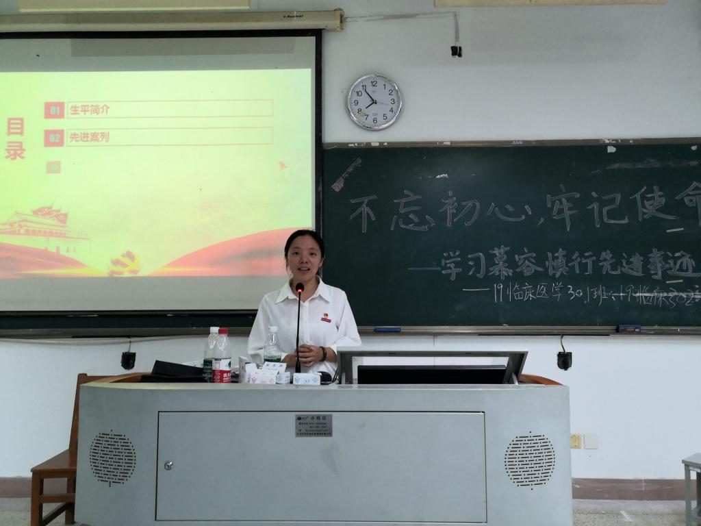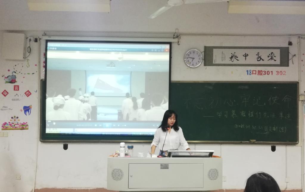 18口腔301团支部刘鹏扬:之前有幸参加了报告会现场,感受慕容慎行前辈的先进事迹,通过此次主题团日活动,更加坚定了我向他学习,坚定信念,提高专业技能,服务社会的决心。19临床303团支部周锦涛:此次主题团日活动感受很多,深深为慕容慎行医生的事迹所感动,也再次感受到我辈肩上的重任。要不断加强学习、提高服务意识,不负前辈的教育,将这种精神一直传承下去。