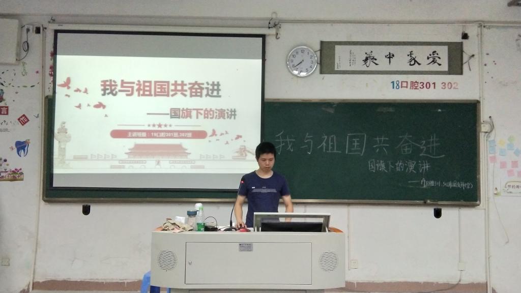 为隆重庆祝中华人民共和国成立70周年,大力唱响礼赞新中国、奋进新时代的青春主旋律,我系团总支于9月28日晚在各班级开展“我与祖国共奋进——国旗下的讲话”主题团日活动。本次活动由各班团支部在班级开展。