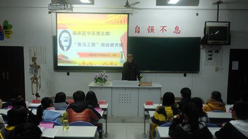 青春的活力在创造中飞扬,青春的价值在奋斗中彰显。12月23日下午,临床医学系召开第五期“青马工程”开班仪式。院办公室副主任、团委宋维书记,临床医学系邱滚忠书记、主任助理林浩、办公室主任曾婷婷以及辅导员出席了本次开班仪式,团总支、学生会及各班级的主要学生干部参加了仪式。