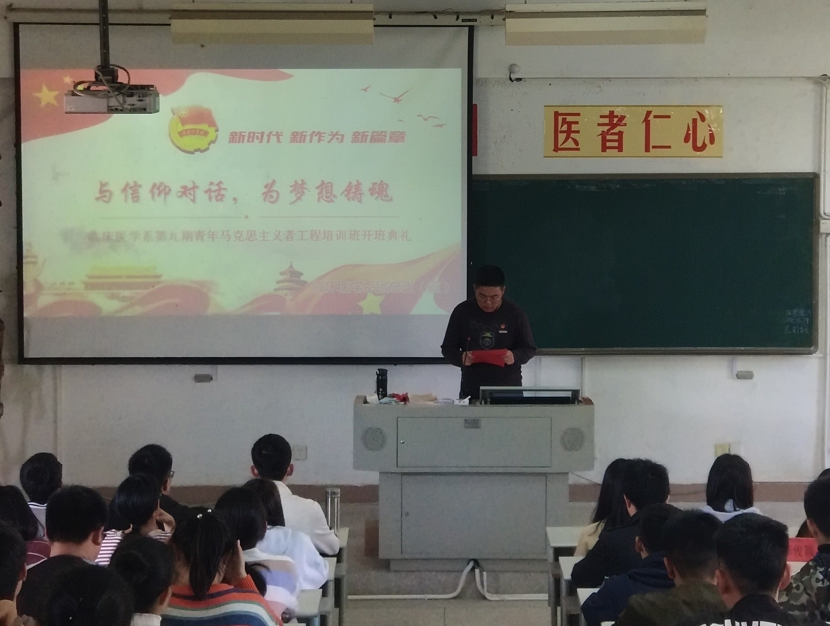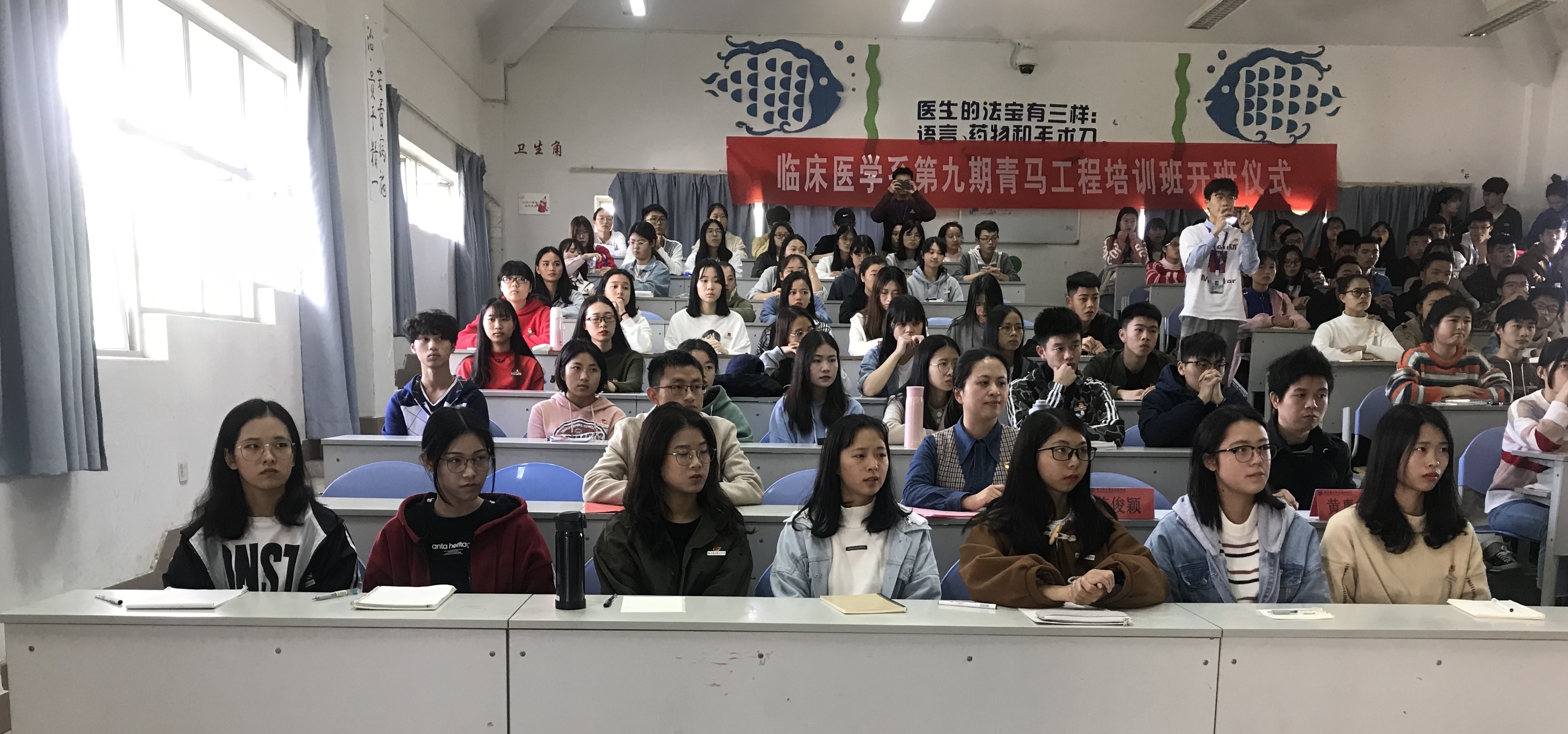 为了加强我系团学干部的综合素质,切实提高学习热情及积极性,临床医学系于11月29日中午在基础部二阶举办第九届青马工程开班仪式,临床医学系党总支陈俊颖副书记、团总支谢林辉副书记及辅导员黄惠龙老师出席此次开班仪式。