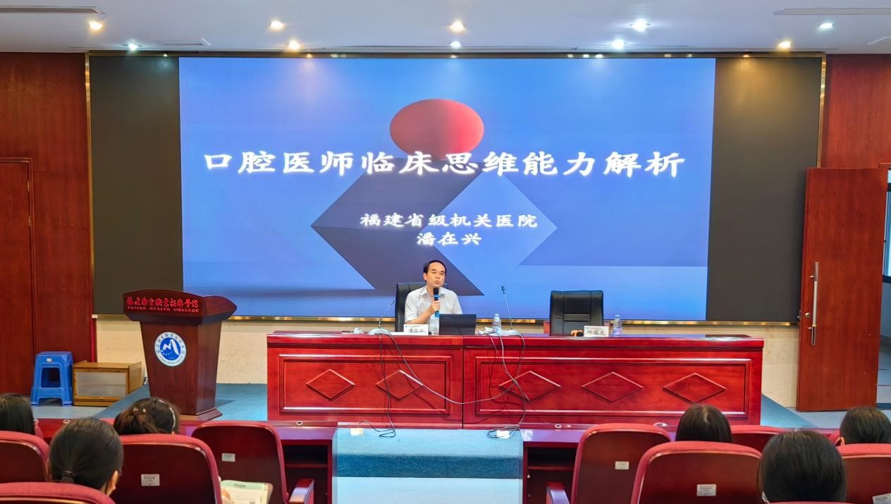 为提升学校口腔专业人才培养质量,提高专业能力建设,5月21日晚,应医学院邀请,原福建省级机关医院副院长、国际牙科医师学院院士(ICD)、福建省口腔质量控制中心副主任潘在兴教授为即将毕业的2020级口腔医学专业学生进行了《口腔医师临床思辨能力解析》专题讲座。会上,医学院党总支书记邱滚忠亲切地为师生介绍了潘在兴教授,对潘在兴教授能来我院为20级口腔医学专业学生举办讲座,并对学院口腔医学专业的建设和发展给予悉心的指导表示感谢!