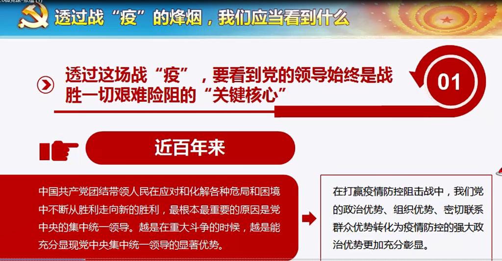为提升支部党员爱国爱党情怀,2020年7月15日,临床医学系第三党支部张蕴副书记利用在线平台开展题为《透过战“疫”烽烟 我们应当看到什么》的战“疫”微党课。