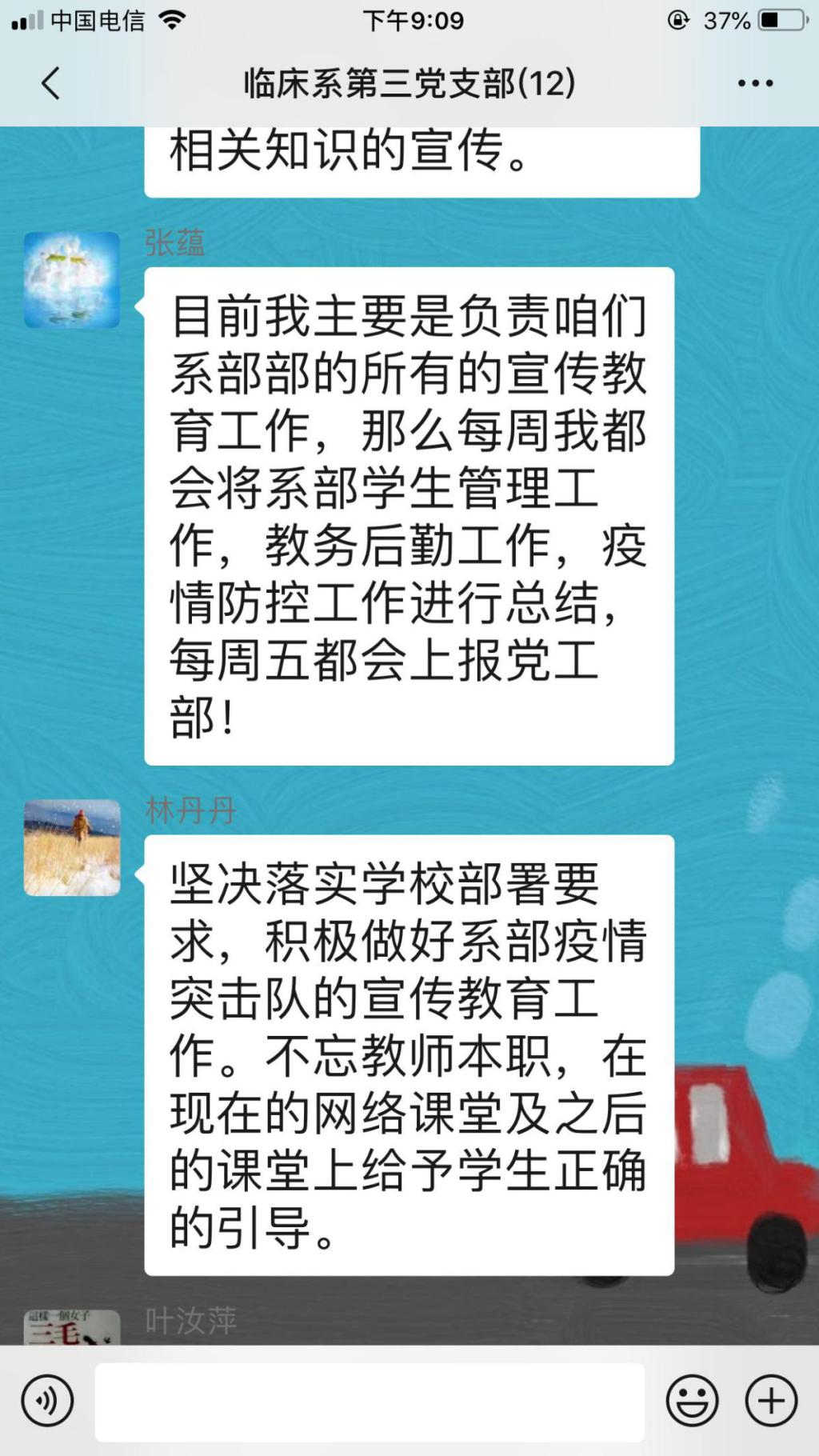 开学在即,为积极应对新冠肺炎疫情,帮助支部党员提高自我防护能力,以更好地维护学校正常的教育教学秩序。2月21日晚上,临床医学系第三党支部利用在线平台开展学习《开云在线登录app入口师生员工开学防护手册(第一版)》主题党日活动,全体党员参加了此次活动,活动由支部书记陈铭同志主持。