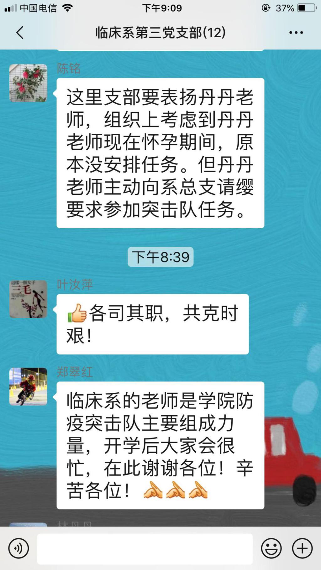 通过认真学习,与会的党员同志们纷纷表示,作为教师党员也作为防疫突击队的成员,会密切关注疫情变化,关注学生动态及身体情况,对学生做好宣传教育工作,积极投身于防疫工作中。同时,不忘教师本职,精心备课,利用网络课堂教学,做到“离校不离教、停课不停学”。郑翠红副校长还指出,临床系老师是学院防疫突击队主要组成力量,让我们同心聚力,打赢防疫阻击战!