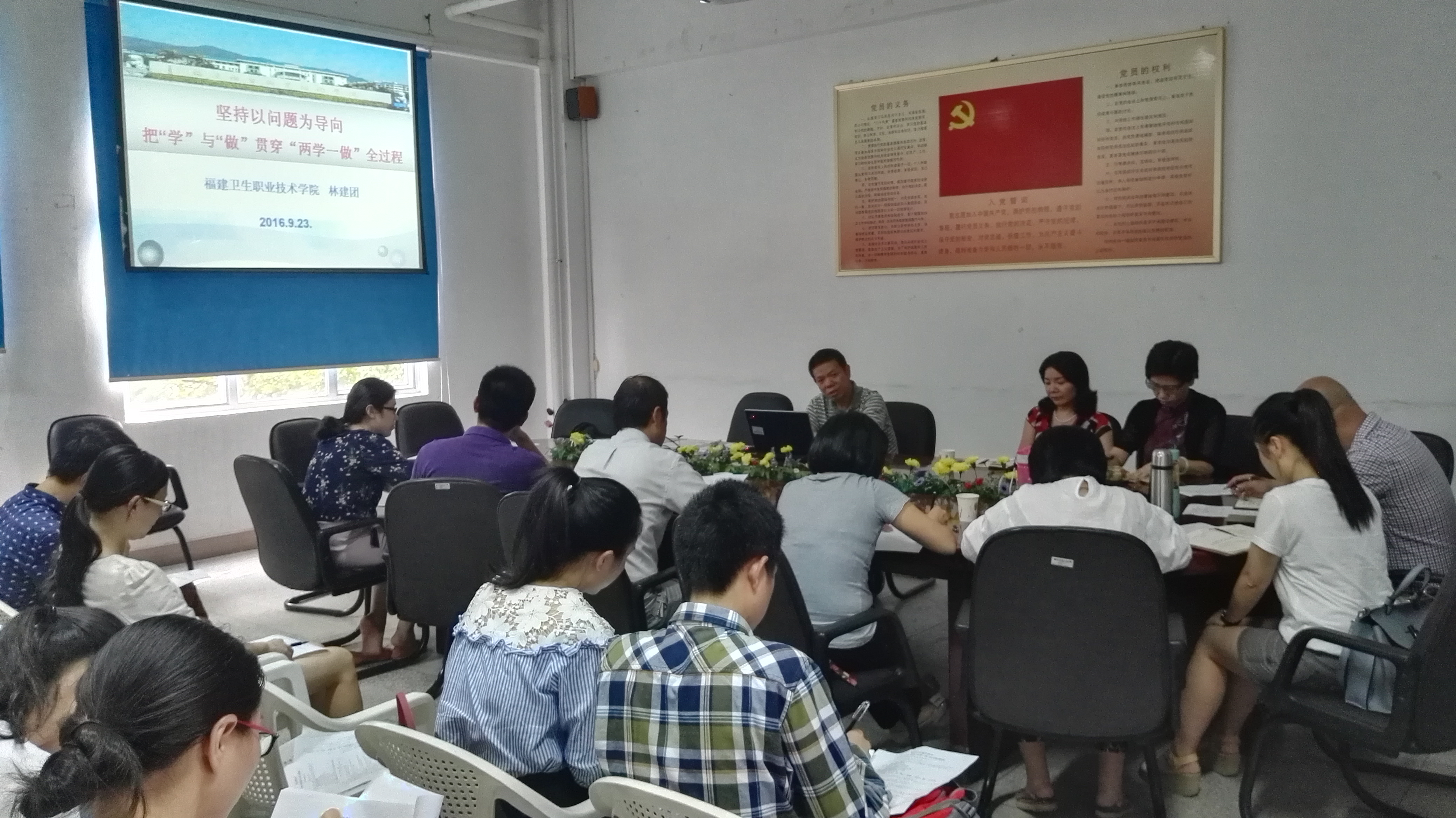 按照学院党委关于“两学一做”学习教育实施方案的部署安排,9月23日下午,院党委林建团副书记围绕“坚持以问题为导向 把‘ 学 ’ 与‘ 做 ’贯穿‘ 两学一做 ’全过程”主题为系部全体党员同志讲了一堂内容丰富的专题党课。院纪委李美华书记及院直机关第一党支部全体党员同志也到场聆听本次党课。
