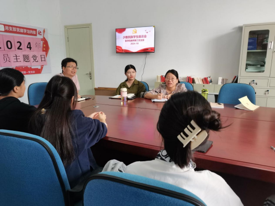 为深入贯彻落实习近平总书记关于加强和改进民族工作的重要思想,铸牢中华民族共同体意识,2024年10月10日,医学院教师第三党支部于门诊楼215室开展“福籽同心爱中华”民族团结主题党日活动。医学院教师第三党支部全体党员教师及中医学、针灸推拿、中医康复技术专业少数民族学生参与此次座谈活动。