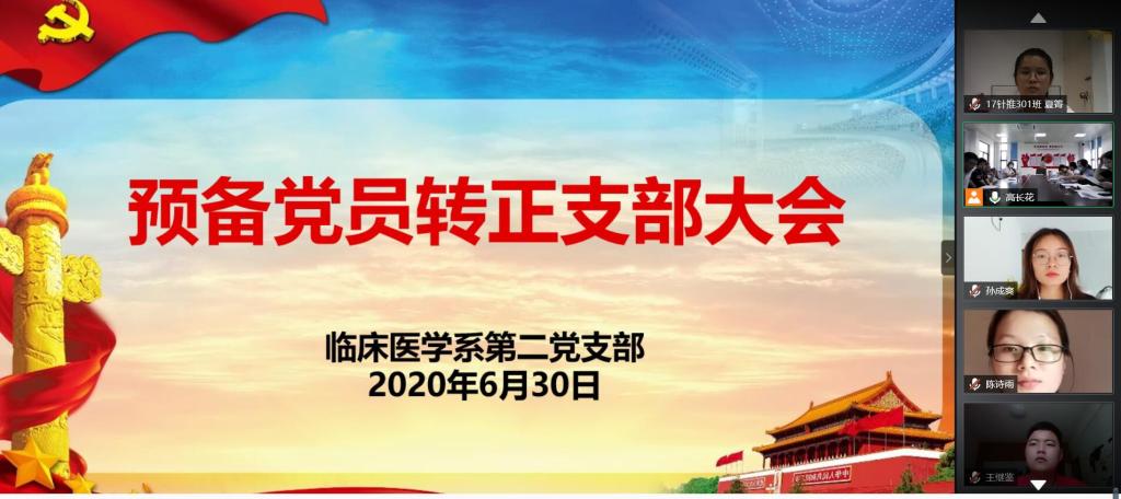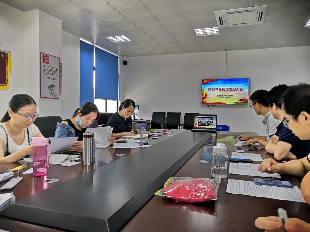2020年6月30日下午,临床医学系第二党支部采用线上结合线下的方式召开预备党员转正大会。会议由支部书记高长花主持,支部11名正式党员全部到会。