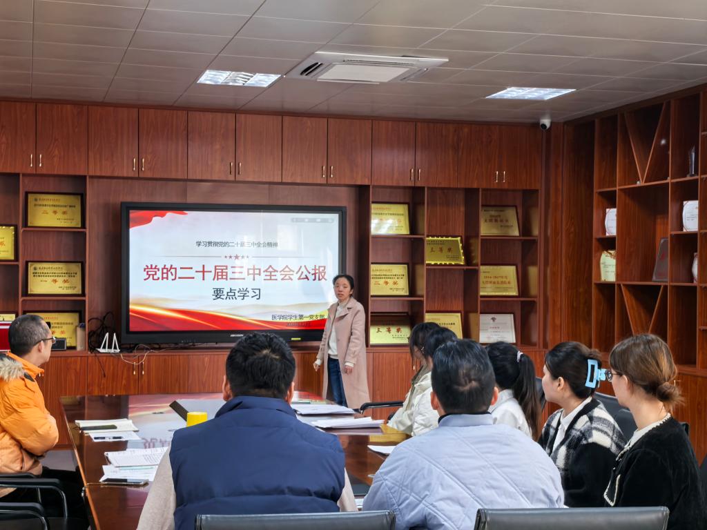 2024年12月19日,医学院学生第一党支部书记江洁为支部全体党员上了一堂内容丰富的党课,旨在帮助党员们深入理解党的二十届三中全会精神,激发他们在学习、工作和生活中积极践行党的最新理论成果。
