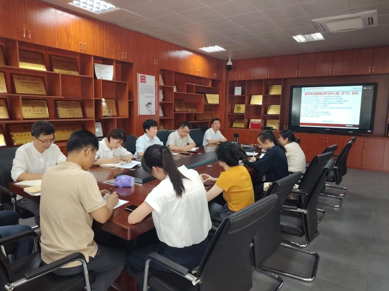 6月19日,医学院召开党委理论学习中心组(扩大)会议暨学习教育读书班学习。党委书记黄小芳主持会议,学院党政班子成员,各党支部支委,团总支书记参加学习。