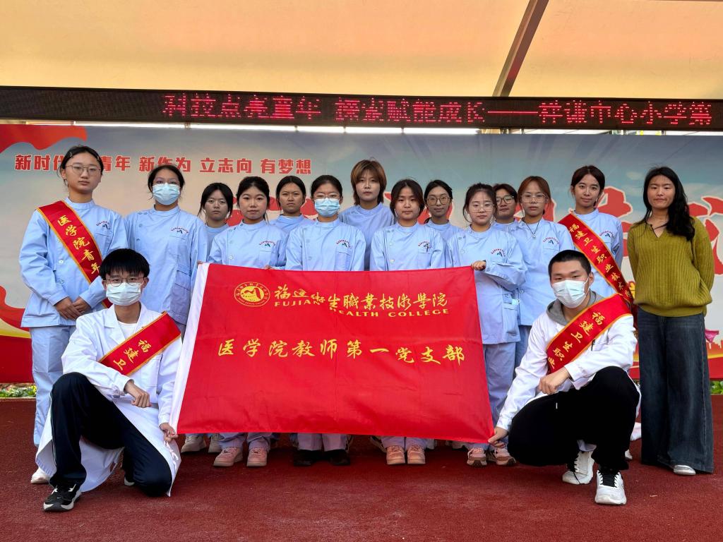 为深入推进党建与专业实践深度融合,充分发挥党员先锋模范作用,筑牢青少年健康防护线,医学院党支部以健康科普为抓手,开展 “科普进校园,健康伴成长” 主题党日活动。 12 月 8 日下午,在党支部柯竟悦老师带领下,15 名医学院学生志愿者走进闽侯县祥谦中心小学,用专业知识践行党员使命,为小学生们送上助力成长的健康“成长锦囊”。