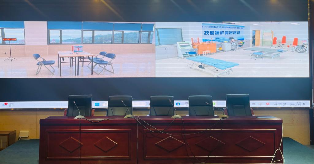 本次比赛设置了观摩室,各参赛院校的领队与指导教师们通过在线高清直播观看整场比赛。