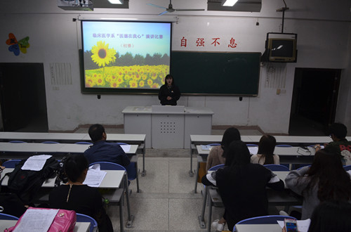 本次演讲大赛中有15级11名选手参加,选手们在台上围绕着“医德在我心,医术任我行”这一主题进行了慷慨激昂的演讲,为我们诠释了医德与医术两者的重要性以及两者的关系。最后,叶家涛老师对本次演讲大赛进行了点评,并鼓励各位选手在今后的日子里以此为目标努力,做到真正的德术双全。