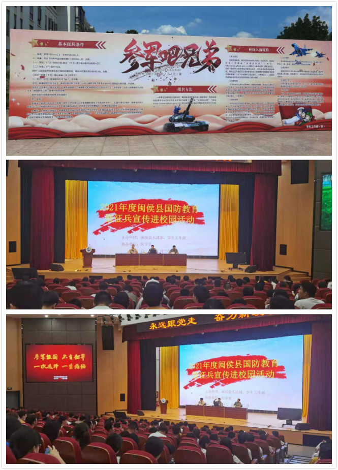 随后,由张丽萍与闽侯县人武部一起给学生们做了一场别开生动的征兵宣传动员会,现场播放了震撼人心的宣传片、发放了“青春无悔”征兵宣传小册子,还举行了现场的咨询会,鼓励我们的莘莘学子携笔从戎,磨砺自身,矢志报国。