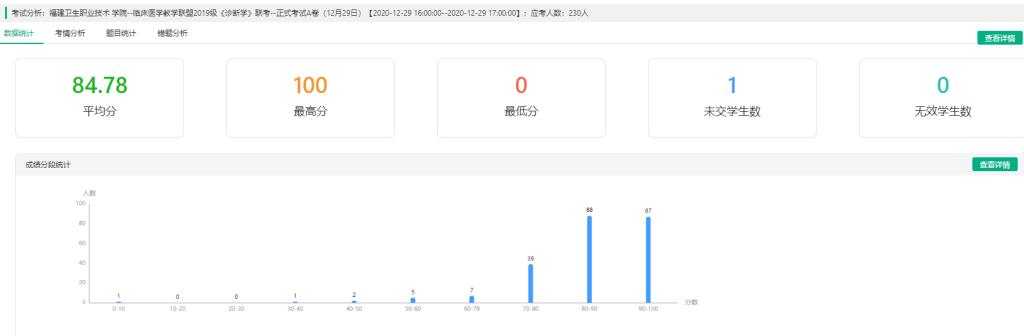 19级共230名考生参加联考,《诊断学》平均分84.78,《外科学总论》平均分84.74。