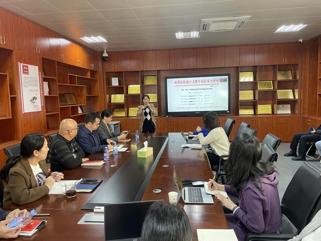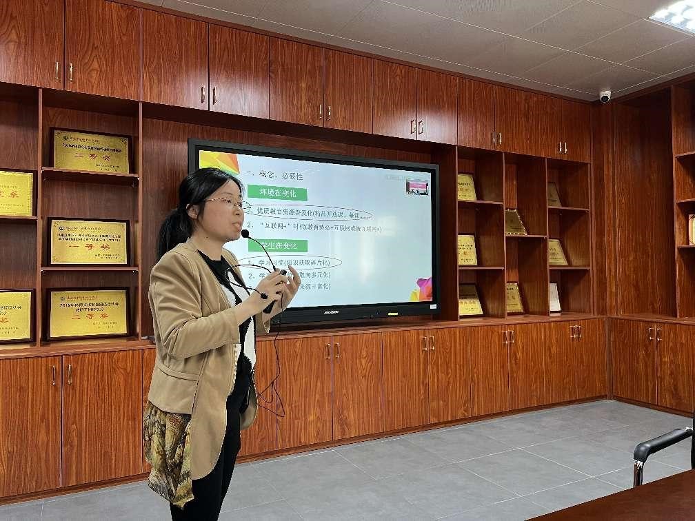 3月16日下午,校级教学培训师、医学院第二党支部入党积极分子林玉琼在医学院311会议室就参加的“混合式教学高阶研究学习班”学习内容,以《建以致用、真正有用—基于混合式教学的课程建设》做主题进行了学习成果分享交流,全体教职员工参加了交流会。
