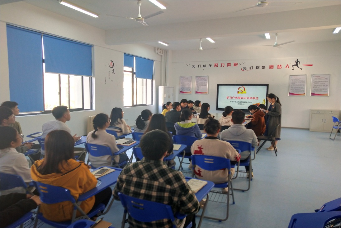 12月26日下午,临床医学系第三党支部在实训楼401会议室开展“学习卢永根同志先进事迹”主题党日活动。