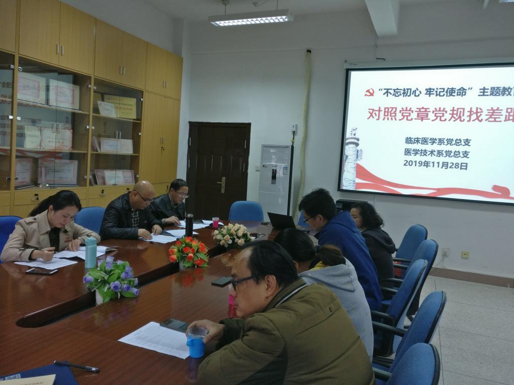 为扎实有序推进“不忘初心、牢记使命”主题教育工作,11月28日,临床医学系党总支召开对照党章党规找差距专题会议。系领导班子全体成员,学院第七巡回指导组邱滚忠、黄玲云列席会议。会议由系党总支负责人陈俊颖主持。