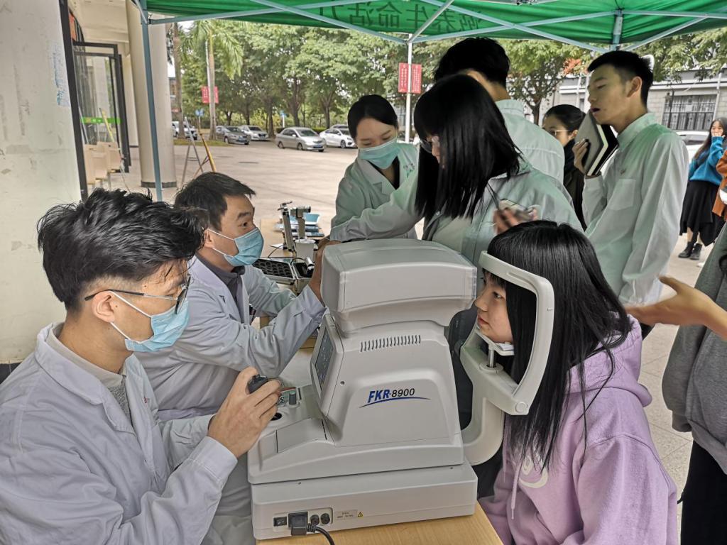 在活动现场,临床医学系第一党支部的党员教师配合医务人员开展了验光、裂隙灯显微镜检查以及中高度近视筛查眼底。通过面对面的形式向广大师生宣传保护眼睛的重要性以及正确用眼的方式方法,引导师生爱眼、护眼,呵护好心灵的窗户,养成良好的用眼习惯。
