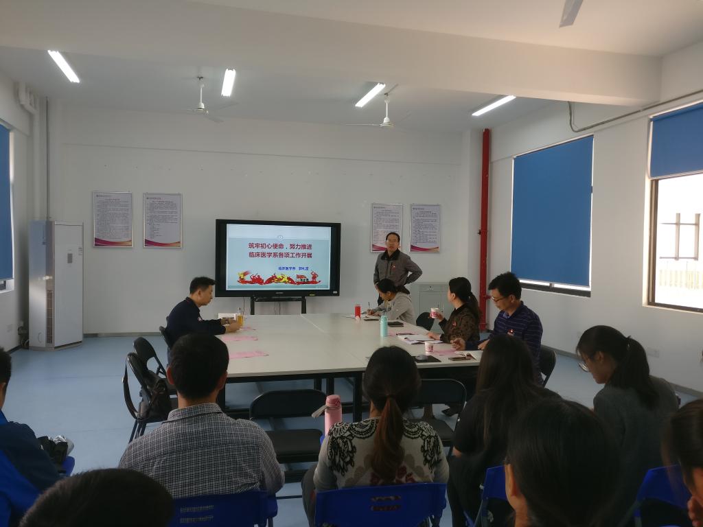 系主任郭礼坚以“铸牢初心使命,努力推进临床医学系各项工作开展”为题,分“铸牢初心使命,强化宗旨意识”、“对标找准差距,深入剖析问题”和“狠抓责任落实,推进工作开展”三个方面,特别是对此次调研中发现的系部师生关注的热点难点进行了重点解读。
