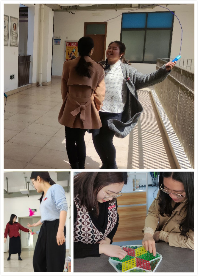 今年是“三八”国际妇女节107周年,为庆祝这个属于妇女们的节日,展示女教职工健康向上、乐观进取的风采,表达她们对工作和生活的热爱之情,营造热烈喜庆的节日氛围,2021年3月25日医学系女工小组在系部羽毛球场地附近举办了一场热闹的趣味运动会,精心安排了羽毛球、跳绳、毽子、跳棋等丰富的趣味活动,大家积极选择自己喜欢的项目,热情投入,团结协作,将原本普通的活动项目玩出了不一样的精彩!
