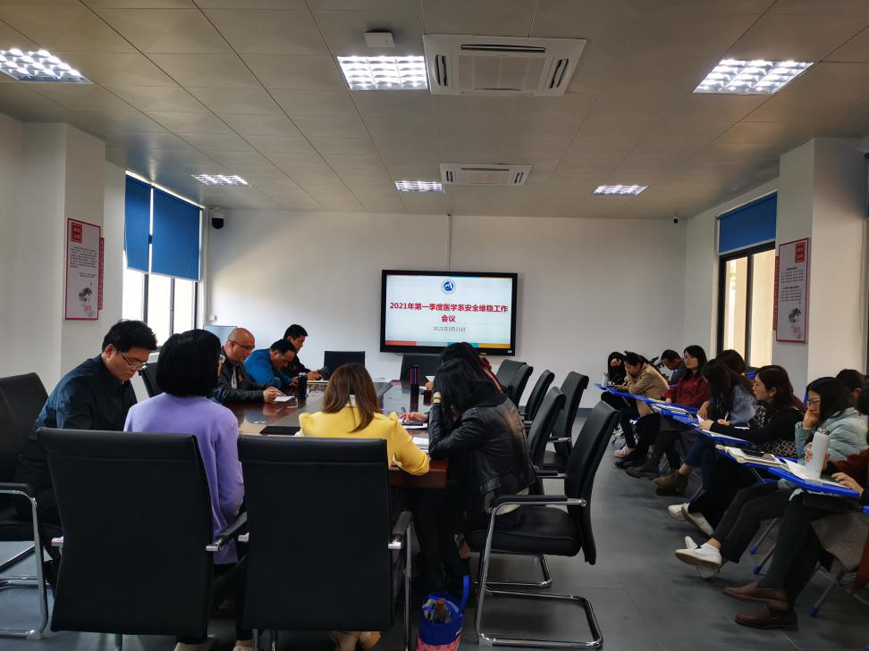 2021年3月26日下午,医学系在系部会议室召开2021年第一季度安全稳定工作会议。会议由医学系党总支书记邱滚忠主持,系副主任林国威、林浩、陈铭、各教研室主任及全体教职工参加了此次会议。