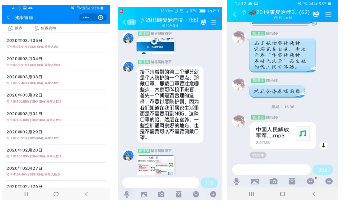 四、学生管理方面:1、每天定时上报学生异动情况、健康情况。2、通过“我在校园”及时了解学生每日健康,及去向情况,上报跟踪异常情况。3、召开主题班会解析教务处下发的防疫文件,学习防疫知识,并教育学生提高警惕谨防利用疫情诈骗。4、开展学雷锋精神,展时代风采团日生活会,结合防疫期间的先进事迹学习雷锋精神。5、掌握学生思想动态,做好思政教育工作。6、把控学生网络学习情况,对异常情况及时跟踪教育。7、对提前返闽学生进行跟踪核实,了解学生健康及生活情况,及时提供帮助,并落实与社区报备情况。