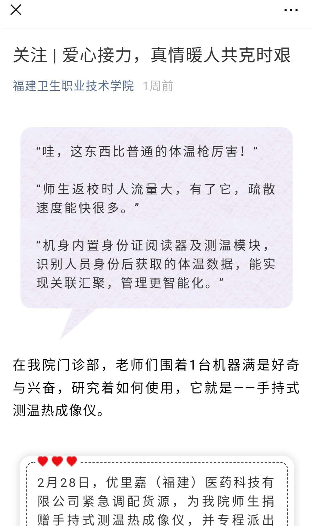 三、卫生防疫组:联合门诊部开展体温枪捐赠活动。
