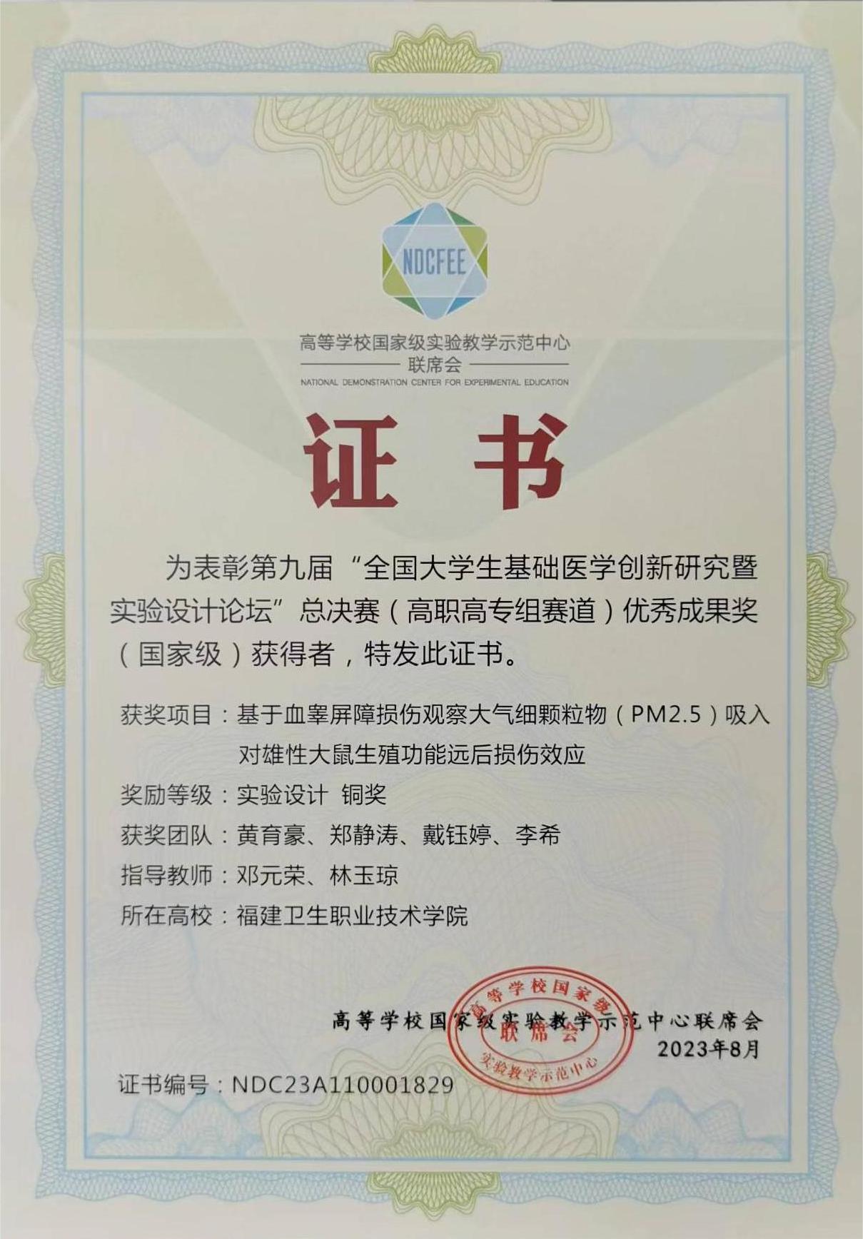近年来,学生荣获全国大学生医学创新比赛省级一等奖3项、二等奖3项、国家级银奖2项、铜奖2项,职业技能竞赛省级一等奖2项、二等奖3项、三等奖2项,在全国职业院校临床医学专业技能大赛和福建省大学生军事技能比武中荣获奖项多次。