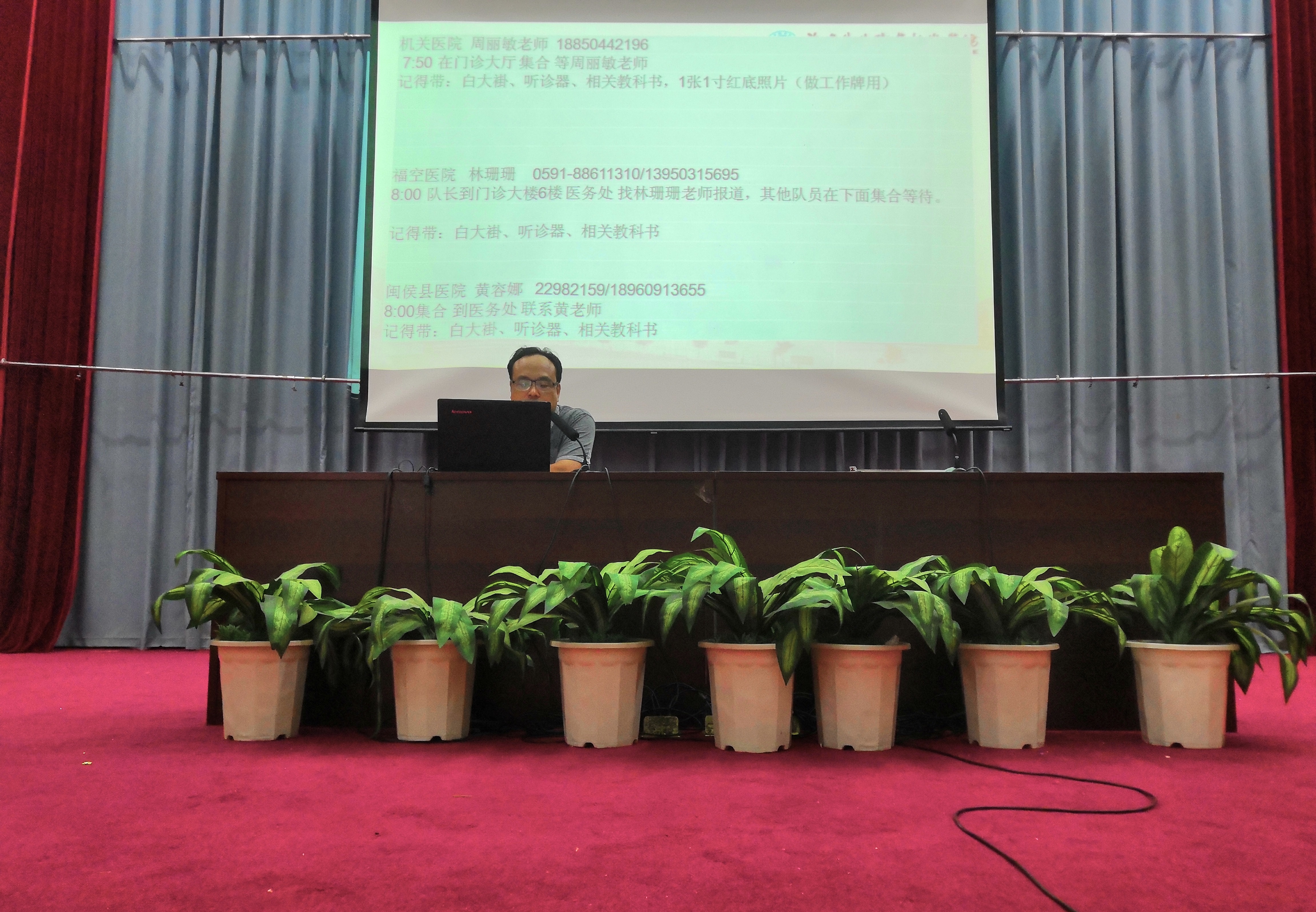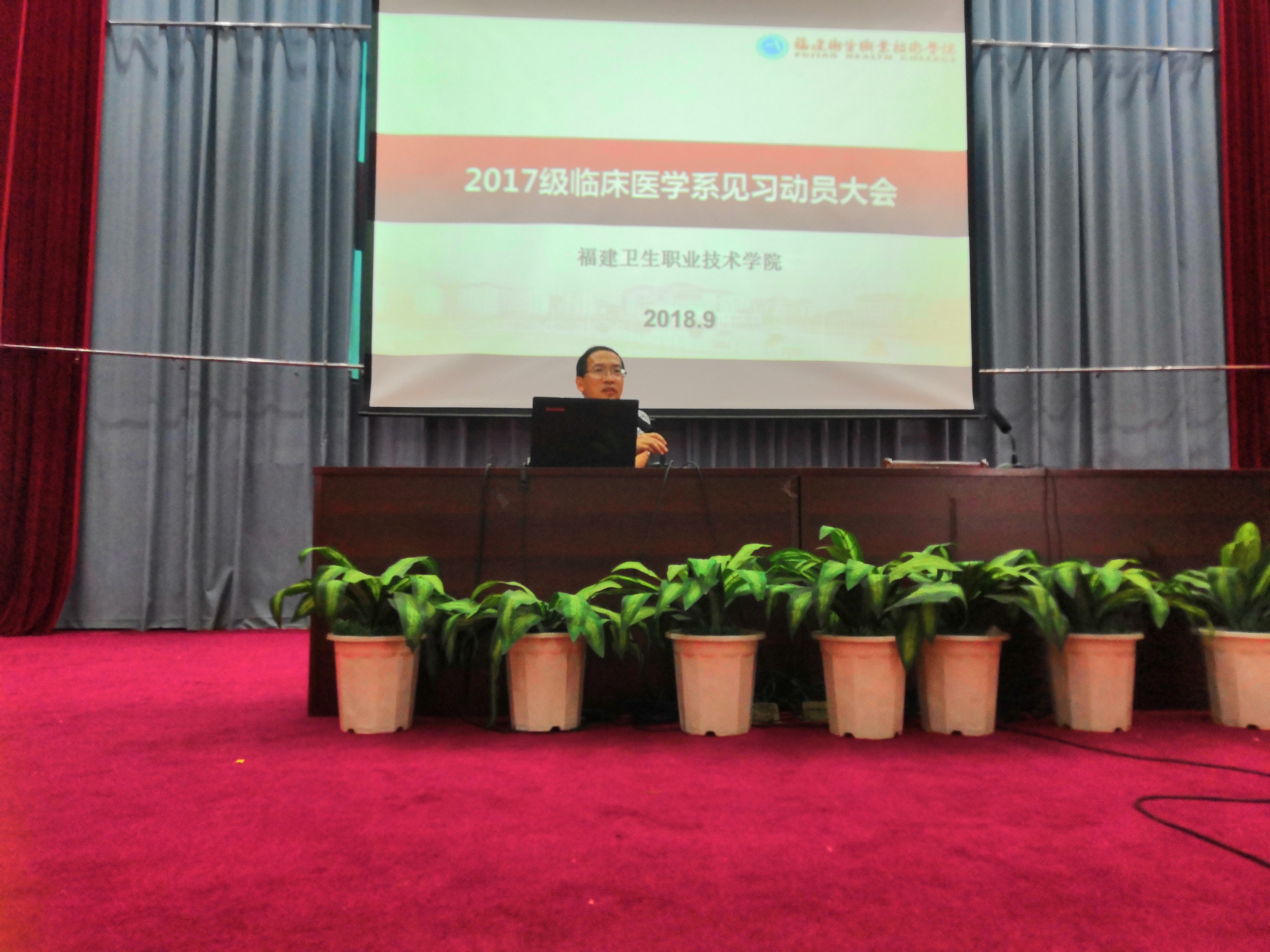 为促进我系见习工作的顺利进行,让同学们对见习有更加深刻的了解,临床医学系于9月27日12点50分在学术厅开展17级学生见习动员大会,党总支郭礼坚书记、副主任林国威老师及我系各专业老师参加了此次动员大会。
