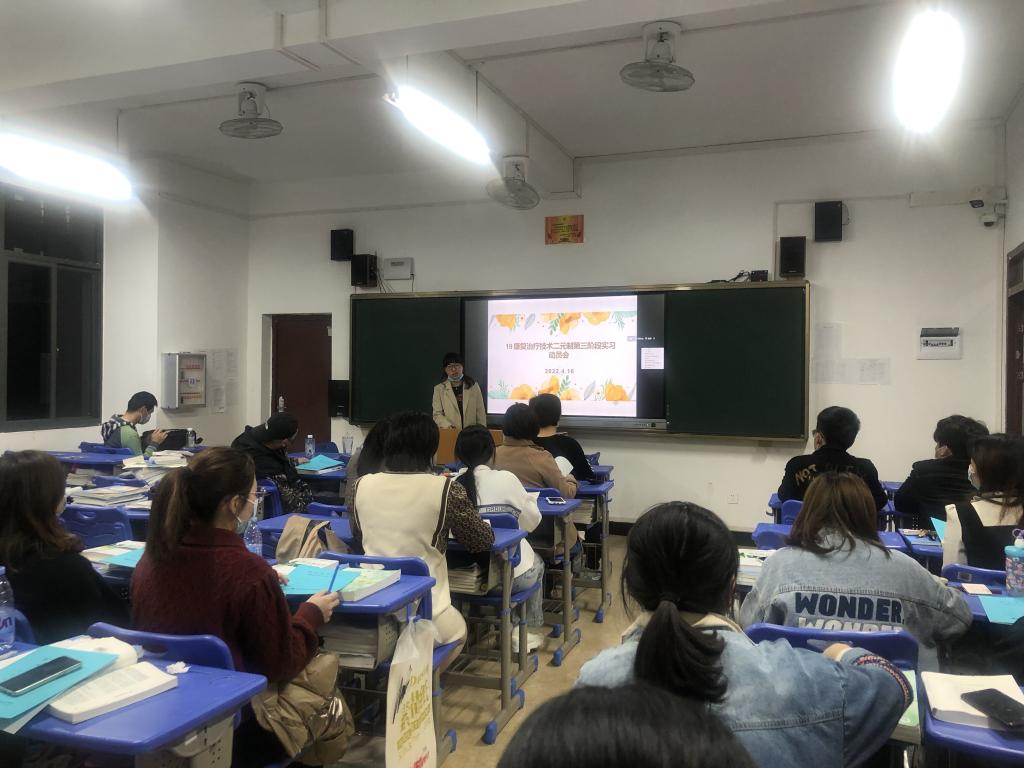 为确保19级康复治疗技术专业(二元制)学生在疫情常态化防控形势下能安全、顺利的完成第三阶段实习, 4月16日,医学院康复治疗技术专业负责人郭洁梅及辅导员蔡唐彦赴平潭开展实习动员大会。