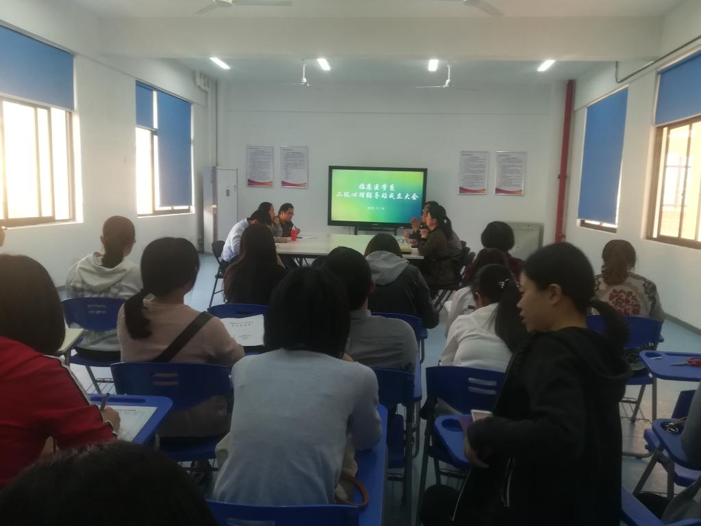 为建立健全学院心理咨询辅导与心理危机干预四级网络体系,促进系部大学生心理健康教育工作规范化和系统化,2019年11月14日,临床医学系召开二级心理辅导站成立大会。