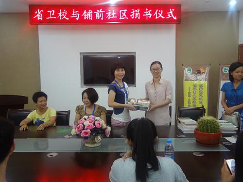 七月骄阳似火,学院热血沸腾,大学生暑期“三下乡”社会实践活动暨就业见习行动。2015年7月3日一早,在福州市台江区铺前社区开展了义诊活动的前期宣传,调查了社区及周边医疗机构的情况,以及展开了与铺前社区的捐书育人的活动。出席本次捐书育人的有团总支书记陈恩平老师,团总支副书记吴涵梅老师,铺前社区主任,包括铺前社区工作人员和参加三下乡的同学们。捐书育人仪式由铺前社区主任主持。