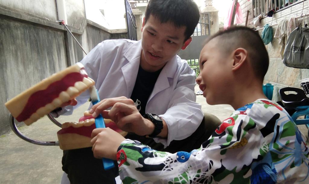 在卫生院主任的带领下团队来到留守儿童家里并送上学习用具、常用药品及生活品作为礼物,孩子们拿到礼物之后都很开心与感激。在与爷爷奶奶短暂的交谈中了解到孩子的学习情况、家庭情况以及学习中遇到的问题,老师们对部分问题也给出相应的建议和鼓励他们要保持乐观的心态,认真学习。与此同时,口腔专业同学为他们做口腔知识宣讲和传授正确的刷牙方式。
