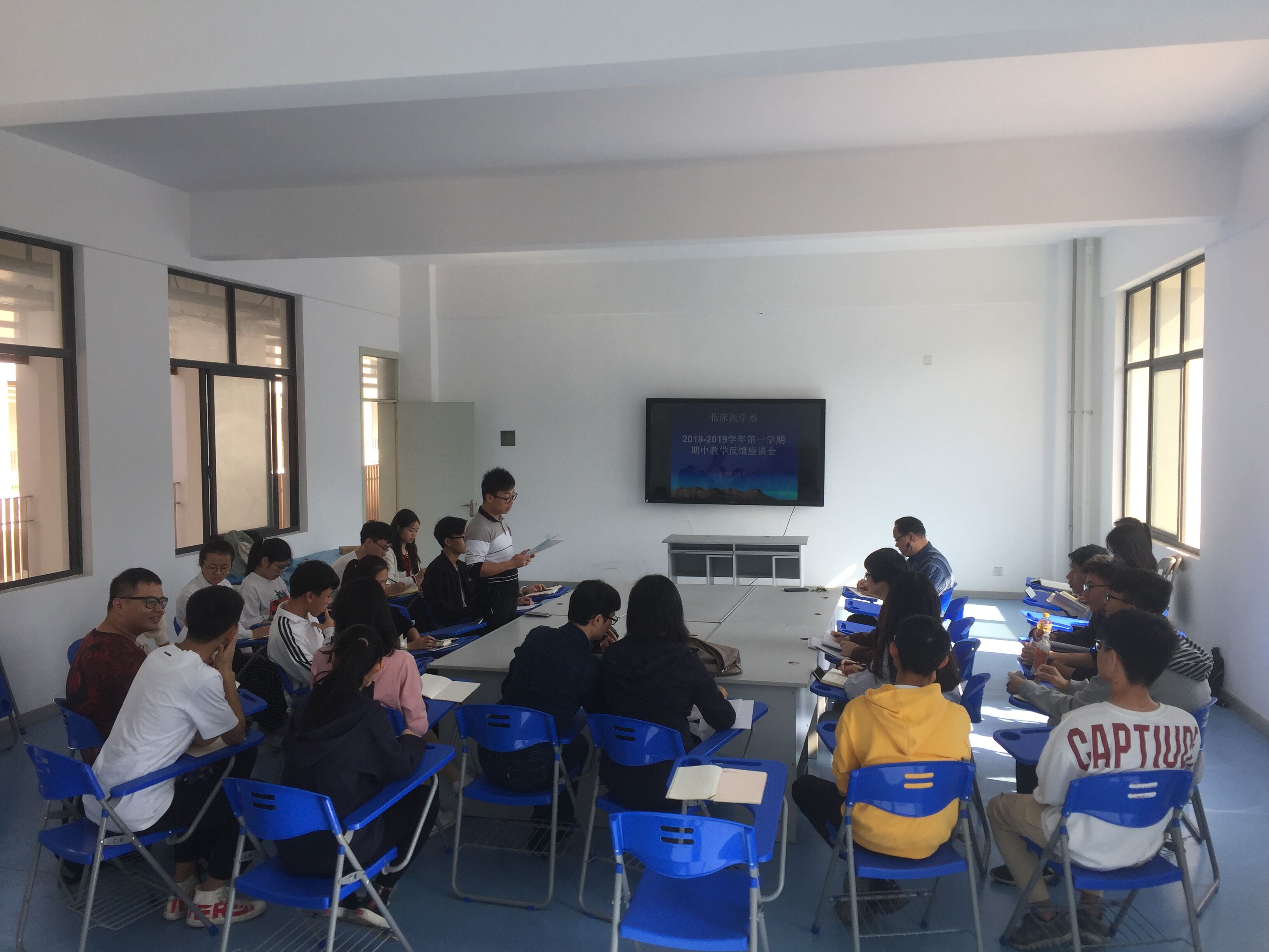 为深入学习贯彻习近平新时代中国特色社会主义思想和党的十九大精神,12月6日12:50临床系在新实训楼409召开了2018-2019学年第一学期期中座谈会。参加此次会议的有学院督导室何旭春、唐青老师,临床系郭礼坚主任、林国威副主任、陈俊颖副书记、林浩副主任、蔡玲玲老师、学习部长及在校各班学委。