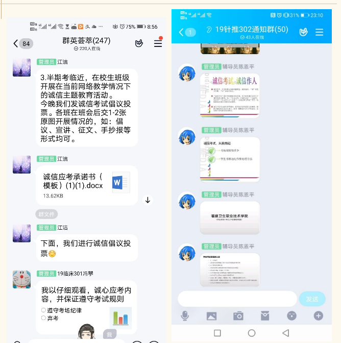 临近期中,为营造“诚信考试光荣,违纪作弊可耻”的氛围,激励学生的荣誉感,促进我系学生良好考风的形成,培养学生自觉抵制作弊的行为。在疫情期间,本次的期中考试采用了线上考试,因此考风考纪的教育更加重要。