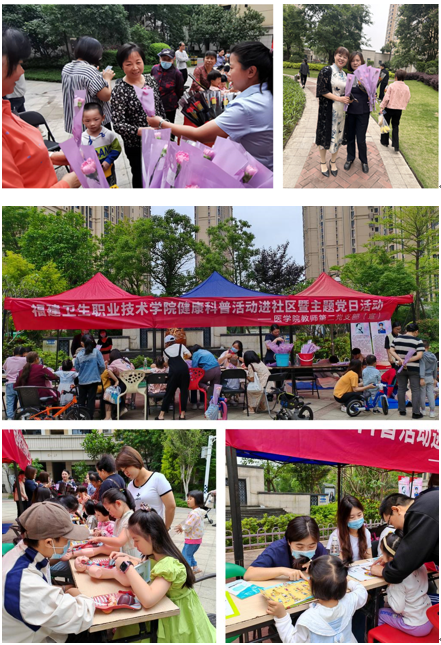 为推动学习贯彻习近平新时代中国特色社会主义思想主题教育走深走实,发挥“双带头人”教师党支部工作室辐射作用,结合2023年职业教育活动周相关活动安排,在5月14日母亲节这个充满爱的日子,由医学院、校团委、中铁二局瑞城物业管理有限公司福州分公司联合主办,医学院教师第二党支部、医学院团总支、医学院红十字会、健康科普青年讲团承办的“感恩母爱,健康陪伴”健康科普进社区暨主题党日活动,在闽侯县荆溪南亭社区中铁城如约开展。