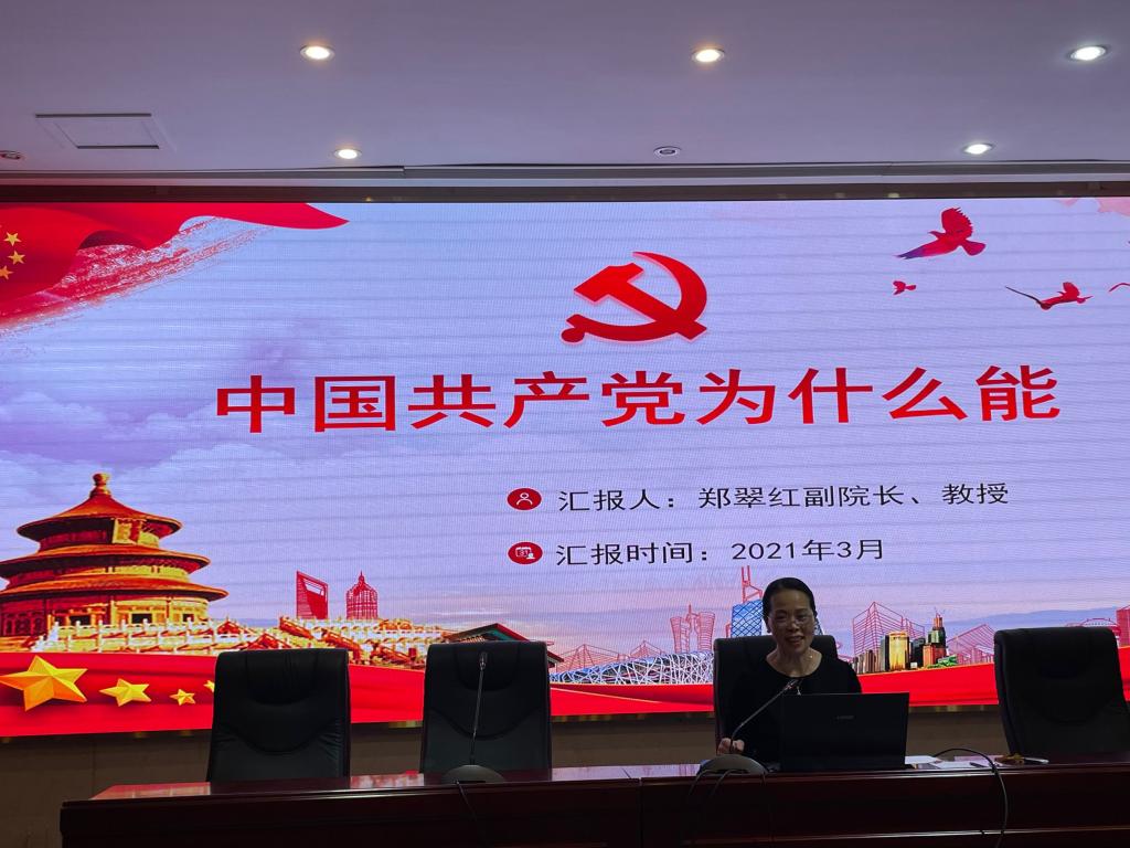 3月29日下午,院党委委员、副院长郑翠红走进课堂,以“中国共产党为什么能”为题为医学系师生讲授开学第一课。