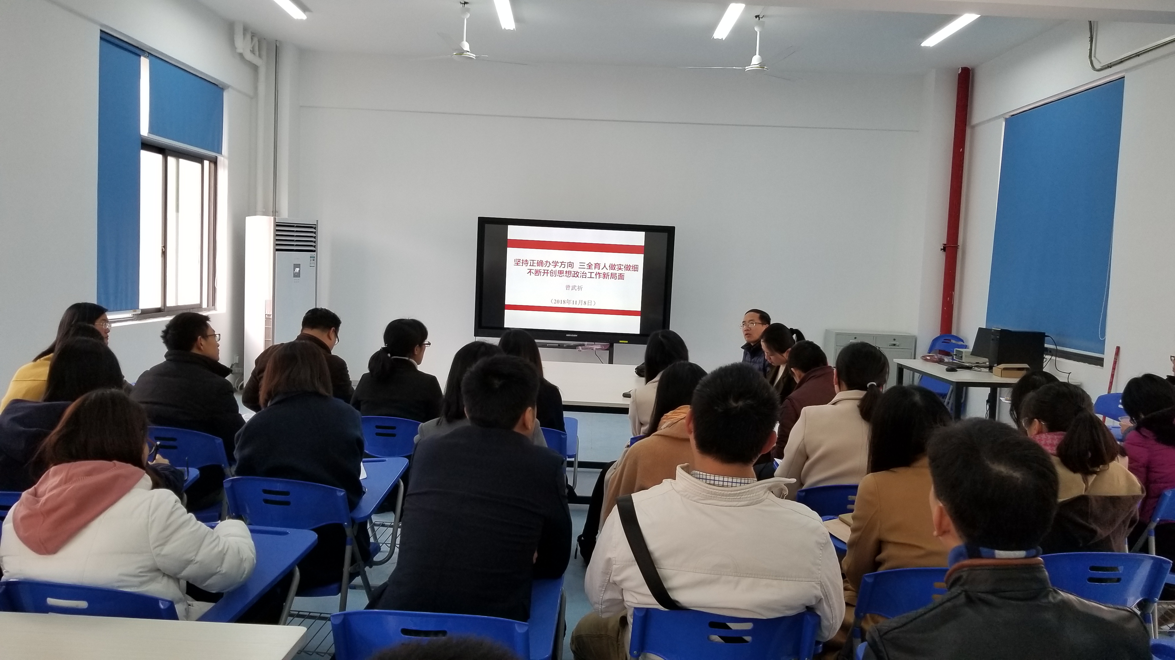 12月13日下午,临床医学系在实训楼401就学院2018年思想政治工作会议精神进行专题学习。学习会由系党总支郭礼坚书记主持,系全体教职工与会。
