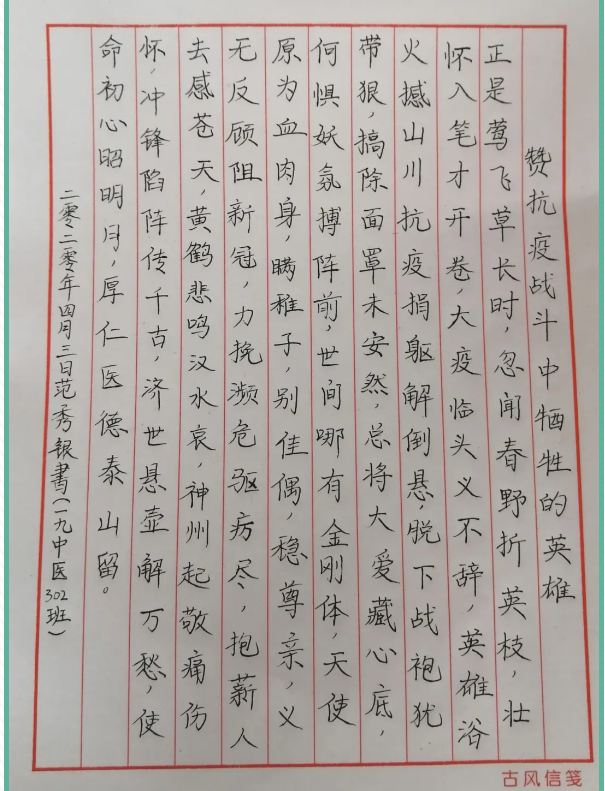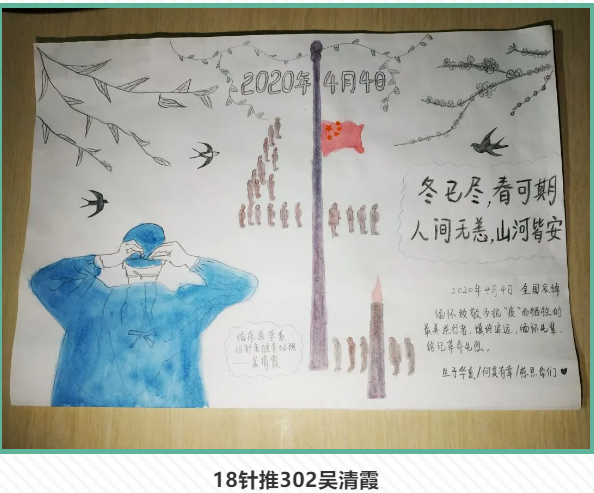 清明是追思过往的回眸,也是希冀未来的遥望。我们感谢白衣天使们坚守为我们带来的春暖花开的希望,致敬最美逆行者,致敬英勇的抗“疫”烈士,致敬中国的脊梁!在向抗“疫”英烈缅怀致敬的同时,我们也要坚定信心!同舟共济,以必胜的决心,打赢这场疫情阻击战!以蓬勃的姿态,迎接更加辽阔的生命。而我们作为新青年,更应该时刻提醒自己肩负着时代责任与复兴伟业,希望同学们能在党和人民最需要的地方绽放青春,留下充实温暖,持久无悔的回忆。