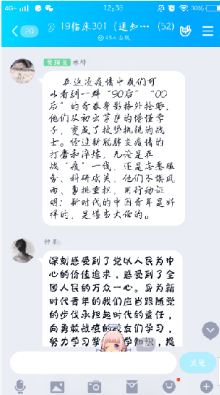 为让同学们更准确地了解我国疫情防控新形势,坚定战胜疫情的决心,鼓舞青春斗志,5月31日晚,临床医学系党总支负责人陈俊颖副书记为临床医学系19临床301班全体同学上了一堂 “战疫情,青春有我,时代有我”为主题的线上党课。