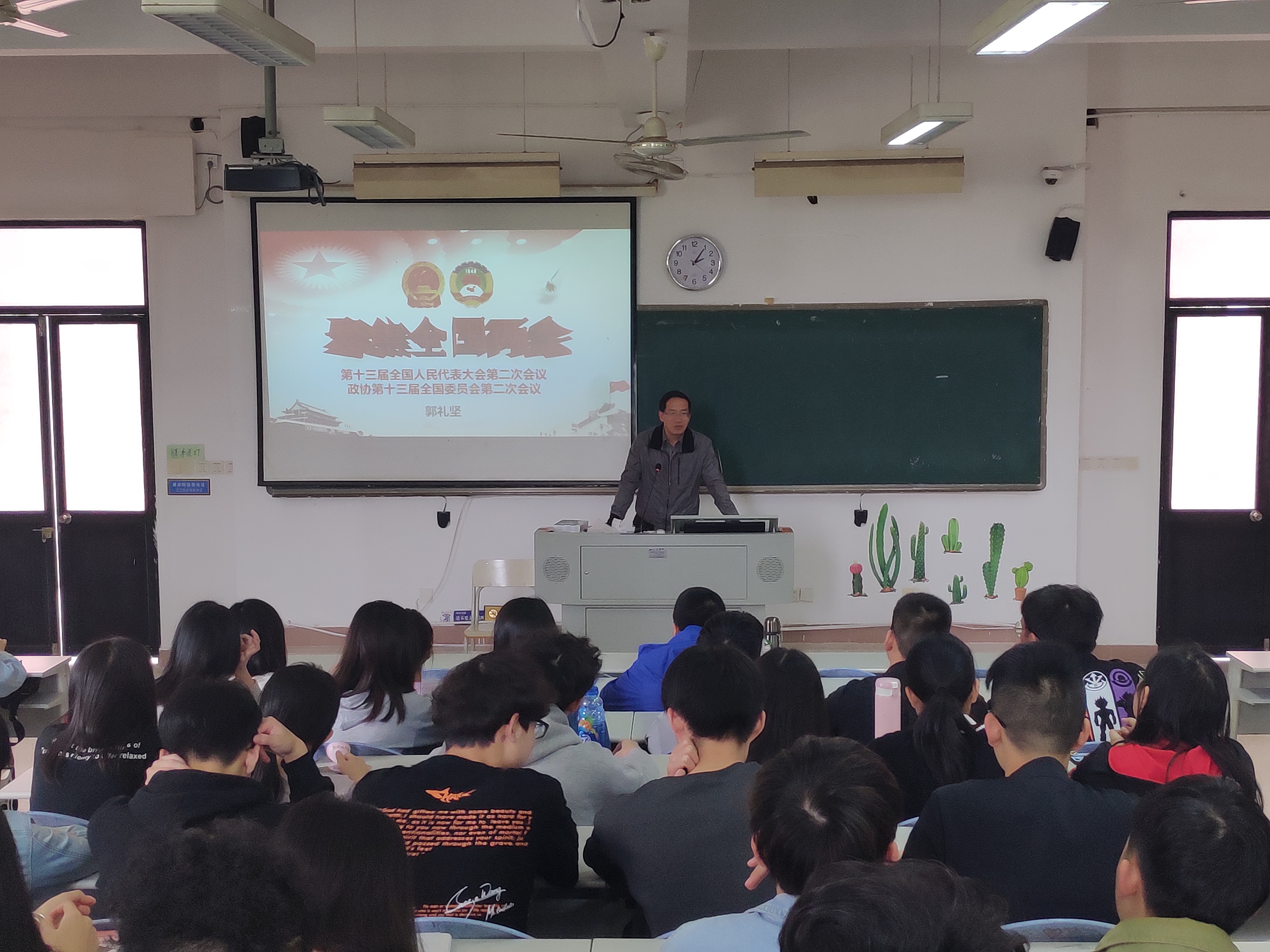 为深入学习贯彻两会精神,临床医学系党政领导郭礼坚主任、陈俊颖副书记分别于5月8日下午在教学楼109教室,5月9日下午在教学楼210教室开展以“聚焦两会”为主题的形势与政策课。