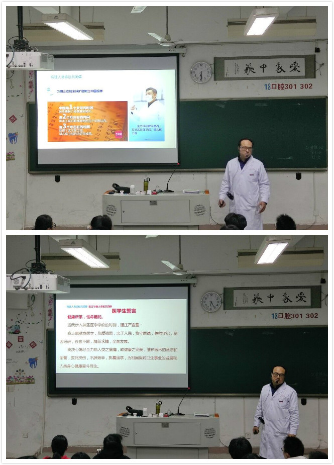 林国威副主任从为阻止疫情全球扩散树立中国榜样介绍起,分四个方面展开:人与自然,构成命运共同体、国与国,构成人类命运共同体、科学家与科学家,构成科技命运共同体以及医生与病人命运共同体、教师与学生命运共同体;带领同学们重温了医学上誓言,让同学们深刻领会了决定你人生高度的,其实是你的学习力。