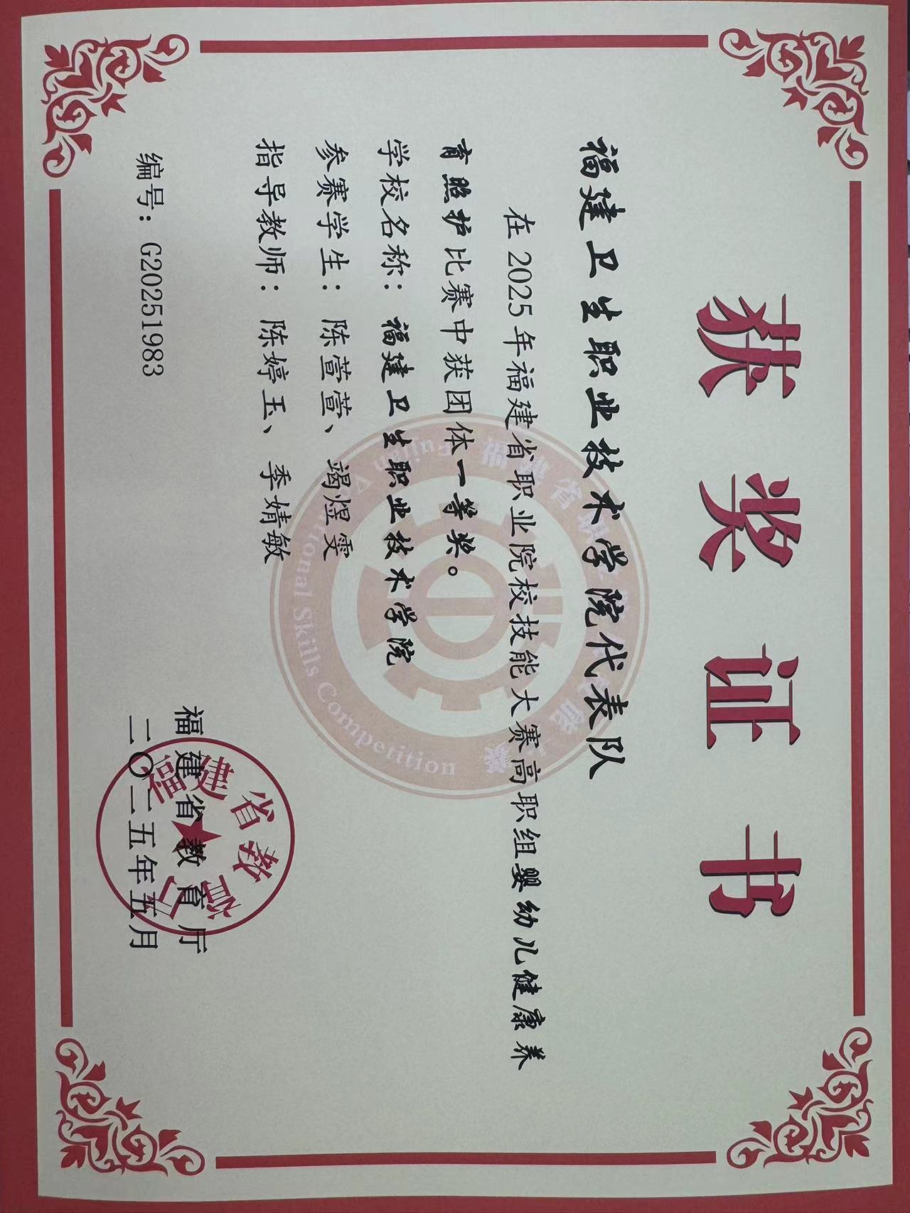 国赛二等奖奖状