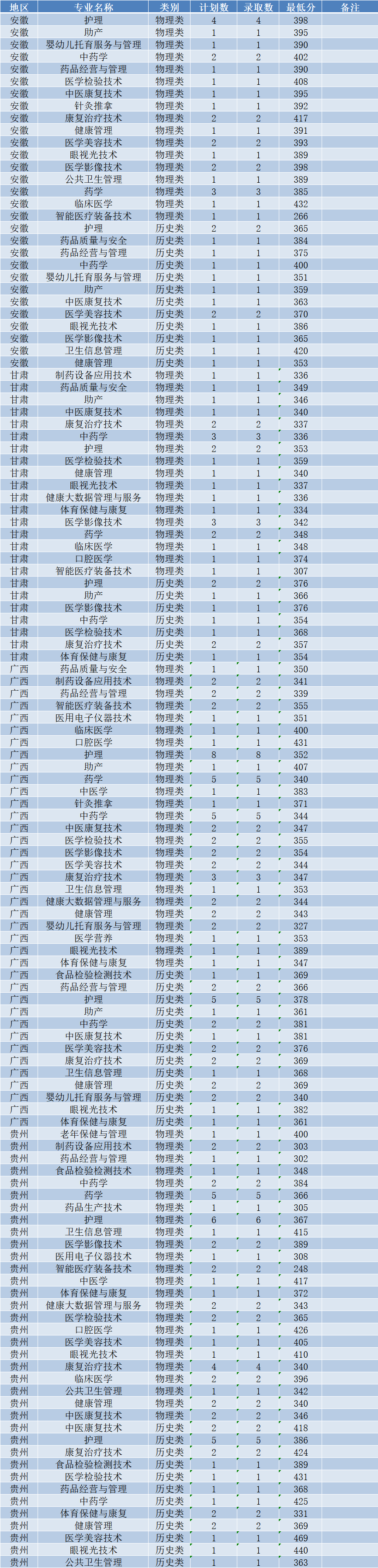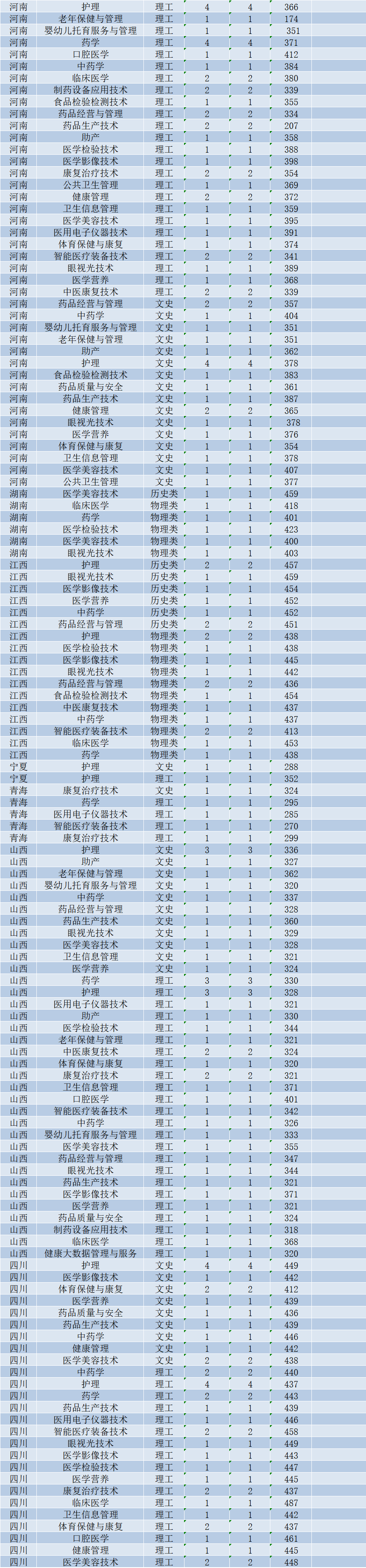 2024年省外高考分专业最低录取分数线