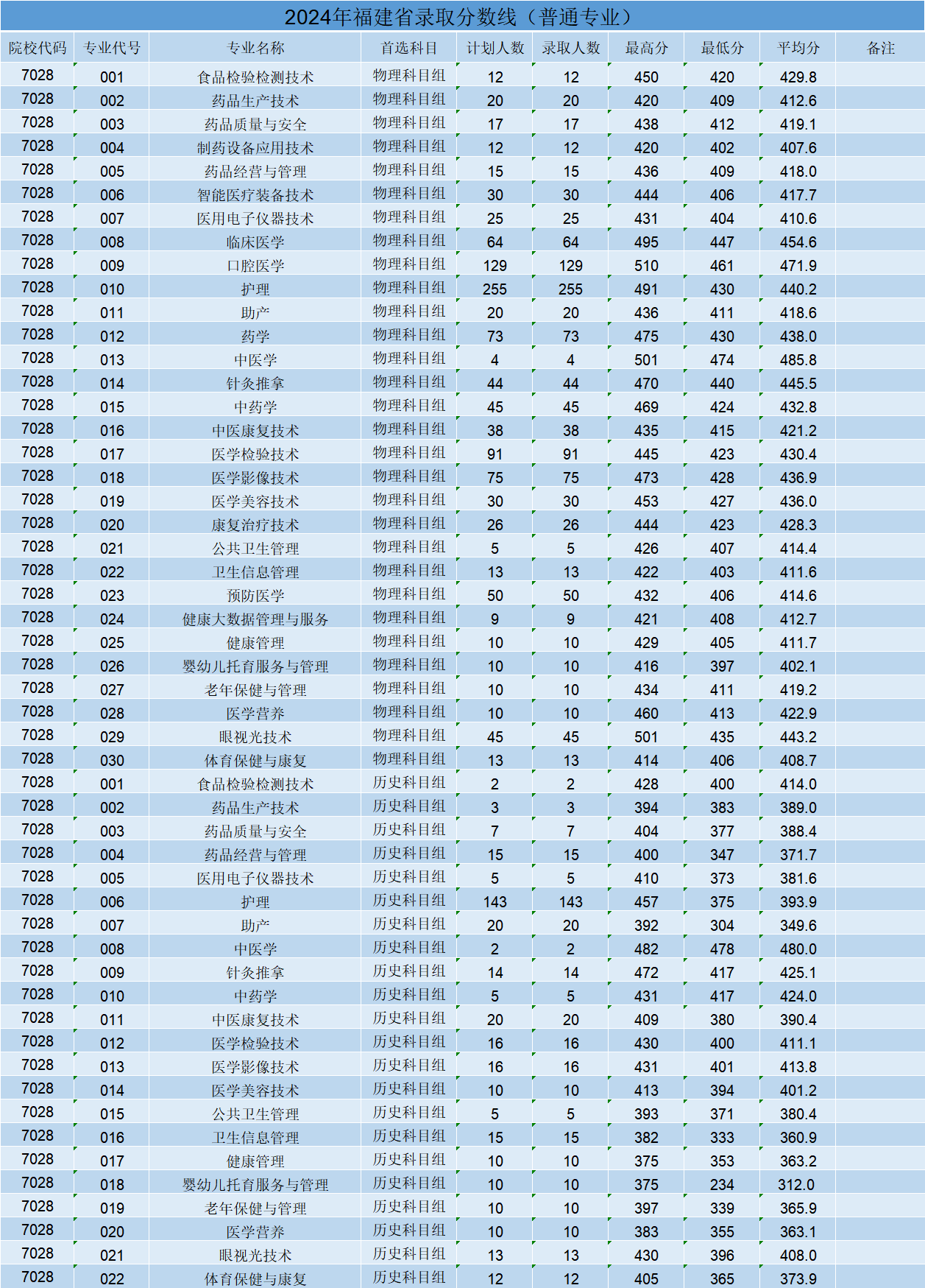 2024年福建省普通高考录取分数线
